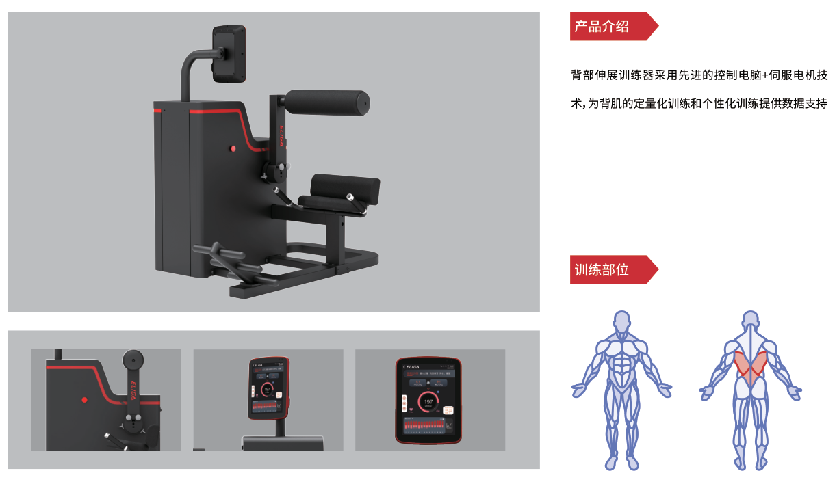 背部伸展训练器采用先进的控制电脑+伺服电机技术,为背肌的定量化训练和个性化训练提供数据支持。