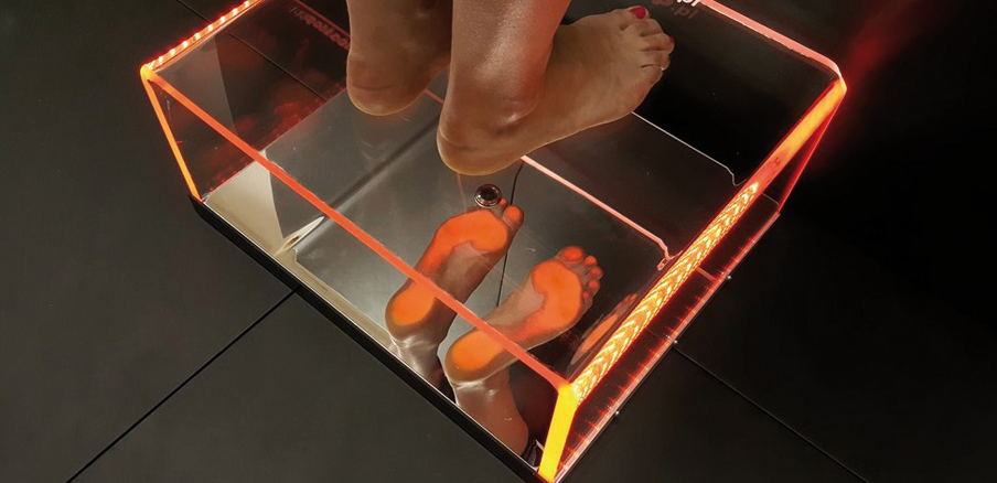 这个设备,归功于最先进的LED灯,允许正确评估足部形状和可能出现的皮肤问题,突出较大压力的区域。脚部支撑的部分是由透明的聚碳酸酯(PC)制成的,具有良好的导光性能,可以在较大和较小的足底负荷点上明显地有颜色强度改变。仪器可以承受150Kg的重量。这个设备是双视频摄像头:一个高清摄像头安装在较低的水平层,用于拍摄照片,或者录制视频,另一个在后面,捕获足后跟部位。照片将被显示在Freestep软件中,直接在软件界面上进行测量和诊断。