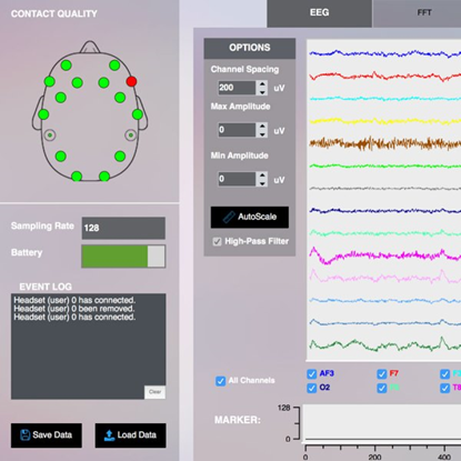实现EMOTIV脑电仪数据流的实时显示,包括脑电图、接触质量、FFT,陀螺仪,无线数据包采集/损失显示标记事件,耳机电池水平。提供SDK开发包。提供多种应用程序套件包。