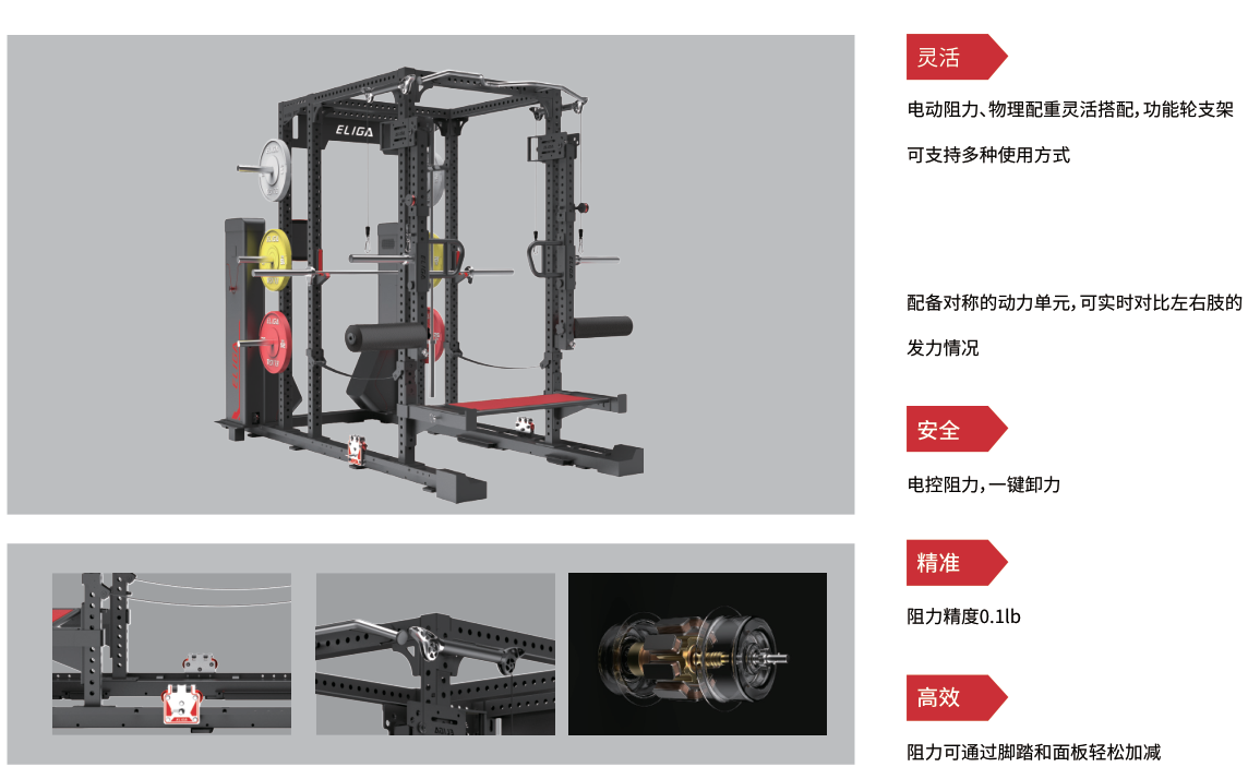 电动阻力、物理配重灵活搭配,功能轮支架